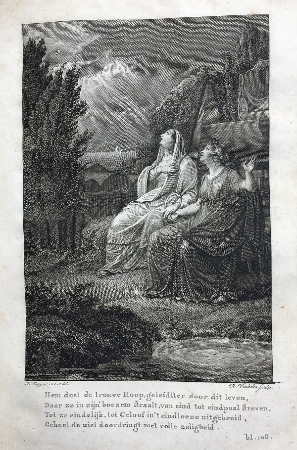 Behalve het afwijkende fraaie titelvignet, zijn er ook aan het begin van elk van de vier “Zangen” fraaie gravures toegevoegd.