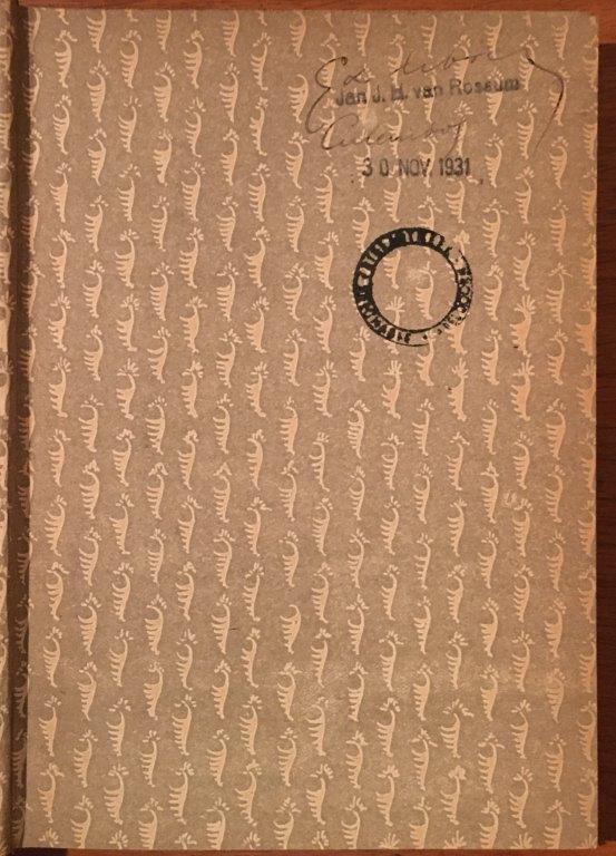 (1) Nieuw Leven: een stempel met “Jan J.H. van Rossum”, met eronder een eveneens gestempelde datum 30 november 1931 en eromheen handgeschreven “Ex libris” en “Culemborg”. Ik ga ervan uit dat deze aanduidingen bij elkaar horen. Op hetzelfde schutblad een stempel “Bibliotheek Seminarie Apeldoorn”, een stempel dat nogmaals (maar dan duidelijker leesbaar) op de titelpagina is te vinden.