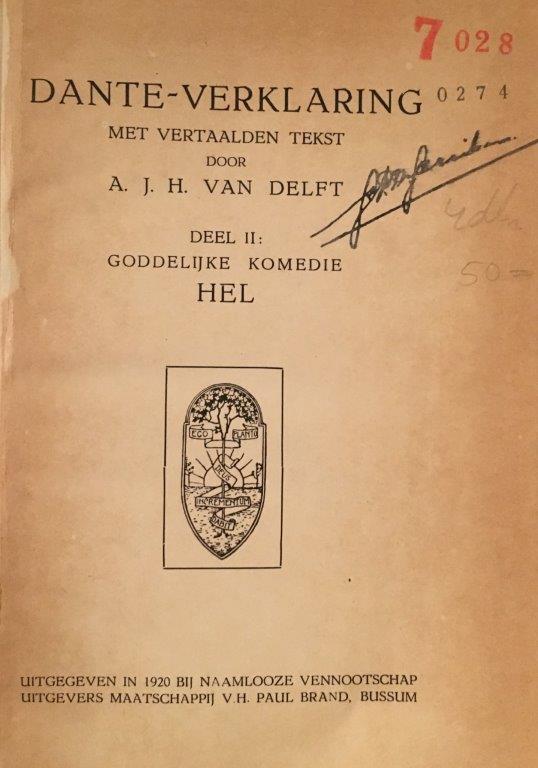 Over de auteur / tekstverklaarder is met een beetje zoeken op het internet voldoende informatie te vinden. Antonius Henricus Joseph van Delft (*Tilburg 1876 – †1958), in 1905 tot priester gewijd, was o.a. kapelaan te Lage Zwaluwe en later Geldrop. Binnen de toenmalige katholieke zuil genoot hij als dichter enige bekendheid. Hij was nauw betrokken bij de culturele emancipatie van de katholieken en verkeerde ook in kringen rond Anton van Duinkerken (W.J.M.A. Asselbergs – later hoogleraar letterkunde te Nijmegen). Van Delft was een groot bewonderaar van Vondel en Gezelle, niet ongebruikelijk tijdens het interbellum, en vooral van Dante Alighieri, van wie hij een uitgebreide studie maakte, hetgeen resulteerde in de hier besproken 4 boekdelen.