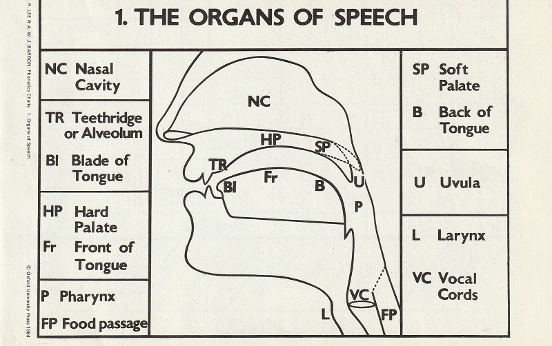 Lee, W.R. & Barron, A.W.J., Phonetics Charts. Handset: Charts 1-5. Oxford University Press, Oxford, 1964. 1e druk – paperback, 5p. – Drie losse kaartjes met daarop in totaal vijf schematische weergaven van het fonetische systeem voor het Engels, in envelop.