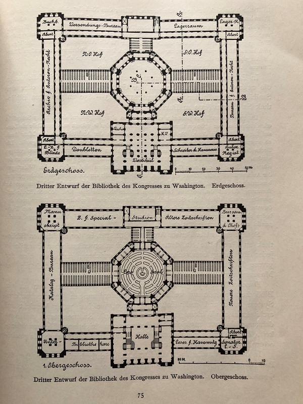 Die Höhe von 2,28 m scheint mir daher, trotzdem sie für die 8 Oktavreihen einen Ueberschuss von 4 cm lässt, für allen späteren Bibliotheksbauten als Normalhöhe sich zu empfehlen.