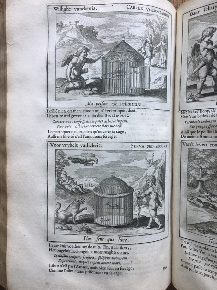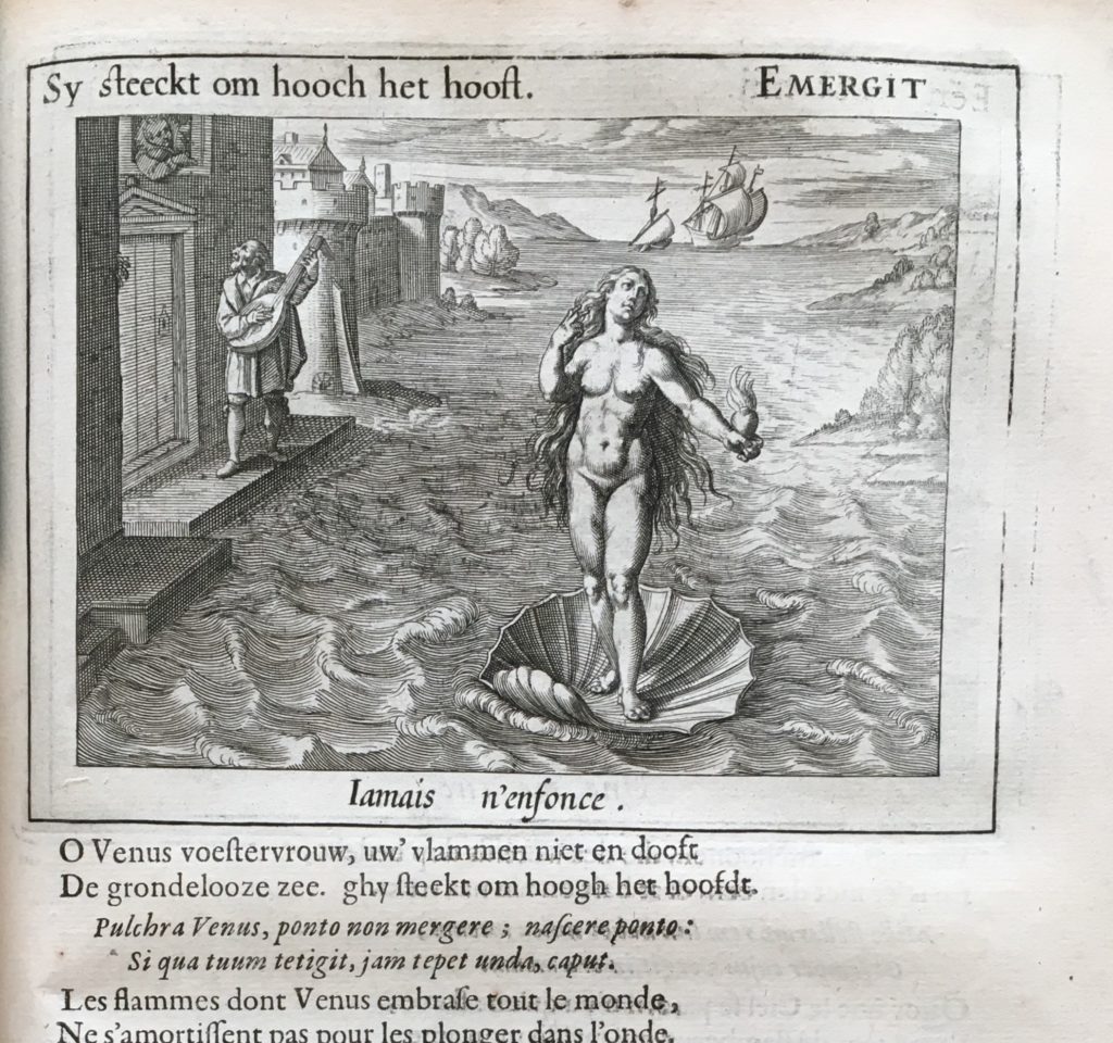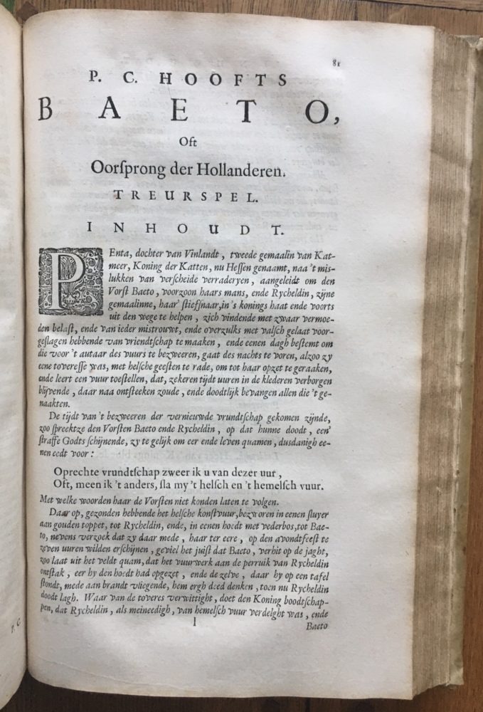 Wat was het geval? Ruim anderhalve week geleden bezocht ik, samen met boekenvrienden Robert Kemper Alferink en Paul Abels de boekenbeurs in de Bergkerk te Deventer. Daar stond ook Rob de Bree, van antiquariaat De Zilveren Eeuw, met mooie boeken, waaronder enkele 17e-eeuwse uitgaven van P.C. Hooft. Speciaal de editie (verzamelde) Werken uit 1671, met de 30 emblemata, sprak mij direct aan.