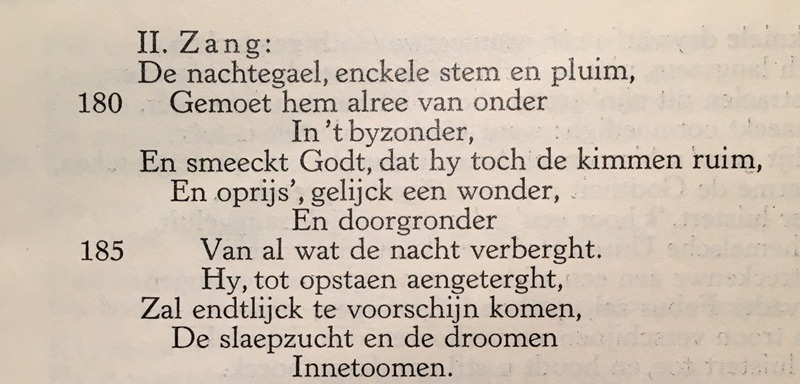 Persoonlijk vind ik dit een van de mooiste 17de-eeuwse gedichten, misschien wel een van de allermooiste uit de gehele Nederlandse poëzie, maar dat geldt voor nog enkele van Hoofts gedichten.