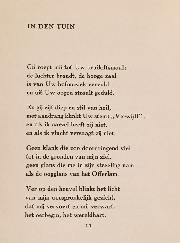 Begin van het openingsgedicht uit Tuin van Eros, “In den tuin”