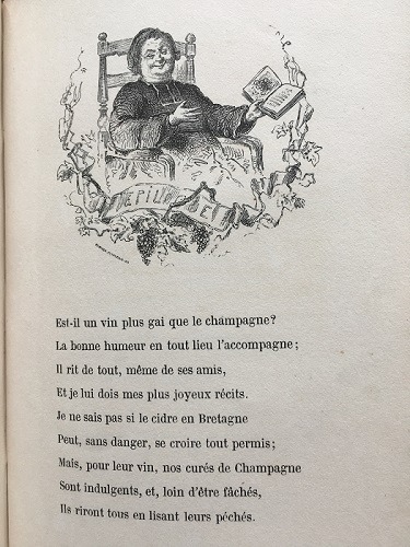 | 1858 | 3e editie, nu half-anoniem: “M. le Cte. de C…” [Monsieur Le Comte de Chevigné]. Vignet op titelpagina toont nu twee proostende/drinkende mannen, een geestelijke en een bourgeois. Daarnaast een duidelijke afbeelding van auteur met sigaar en een van zijn vriend S. Lavalette, aan wie het voorwoord is gericht. Deze editie bevat ook voor het eerst het voorwoord waarin hij zich feitelijk richt tot de censuur. Hierover zometeen meer. |