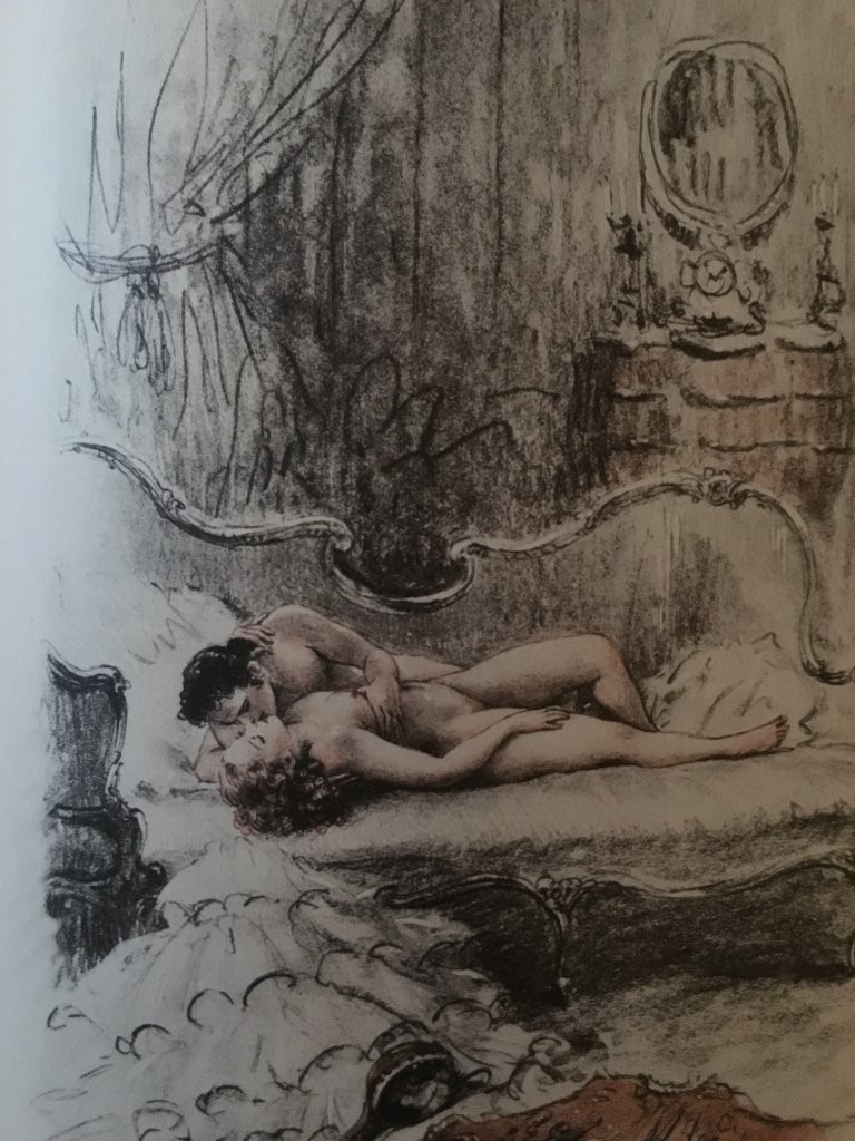 Op een boekenmarkt stuitte ik onlangs weer op een heel aardig boek. De titel zei me niets, maar de naam van de schrijver was me wel bekend. Mijn interesse werd gewekt door de fraaie Franse band en de goede staat ervan. Daarnaast bevat het boek een aantal interessante erotische prenten.