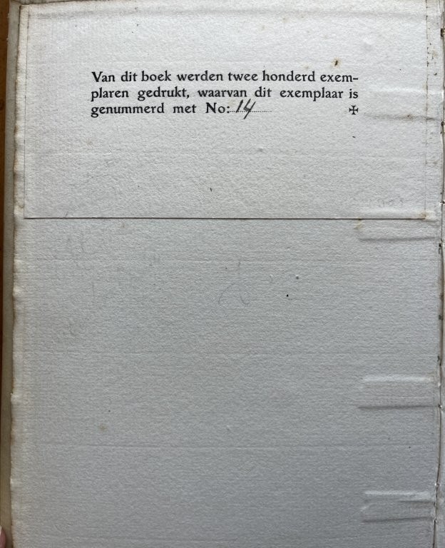 Overigens is onze boekenvriend Perkamentus baas boven baas. Hij bemachtigde in 2014 al een exemplaar met een zeer fraaie particuliere band. Zie daarover de passage onderaan zijn blogstuk.